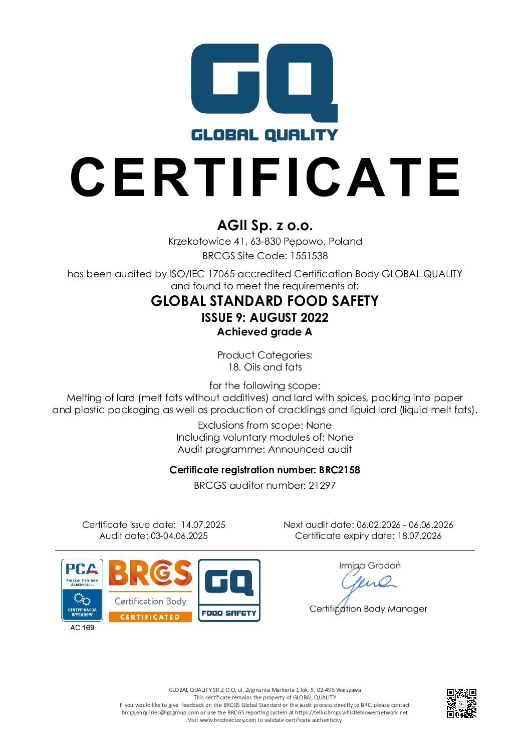 Misją działalności naszej firmy jest produkowanie wysokiej jakości tłuszczów zwierzęcych i skwarek zgodnie z oczekiwaniami Klientów oraz aktualnie obowiązującymi przepisami prawnymi.